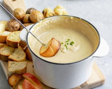 Delicioso fondue de queso cheddar con cerveza