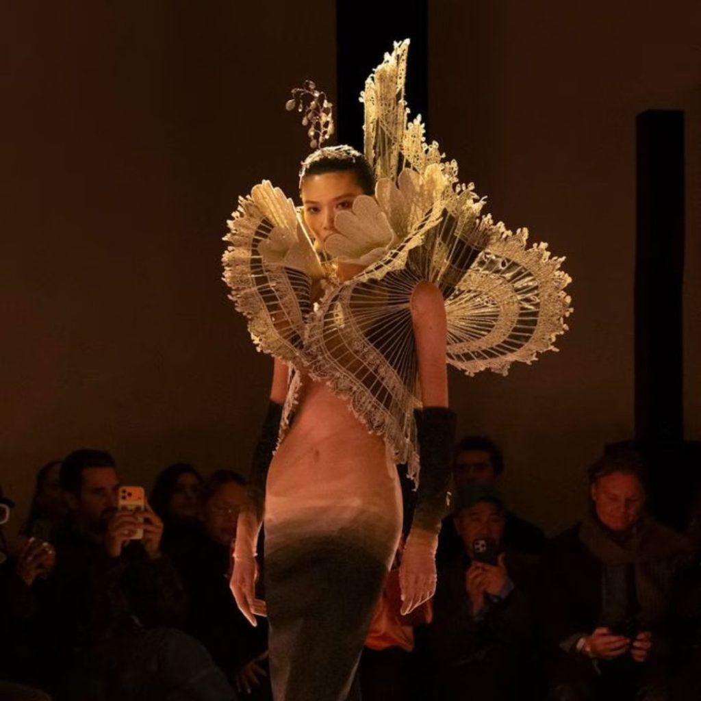 La firma fue la encargada de inaugurar la temporada de alta costura en París con un desfile de inspiración religiosa en la Capilla Sixtina, donde Daniel Roseberry presentó, en uno de los salones del Petit Palais, transformado para la ocasión con cortinas negras que potenciaban el dramatismo de las propuestas, sus nuevos diseños en un despliegue visual deslumbrante que brinda una oda a la indutria.