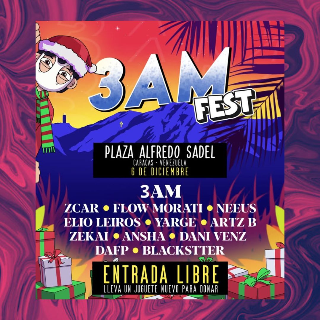 El dueto de hermanos venezolanos 3AM, presenta la primera edición de su 3AM Fest, con el propósito de recaudar juguetes para llevar alegría a los niños de la ciudad. Entrada gratuita, puedes llevar un juguete para donar.