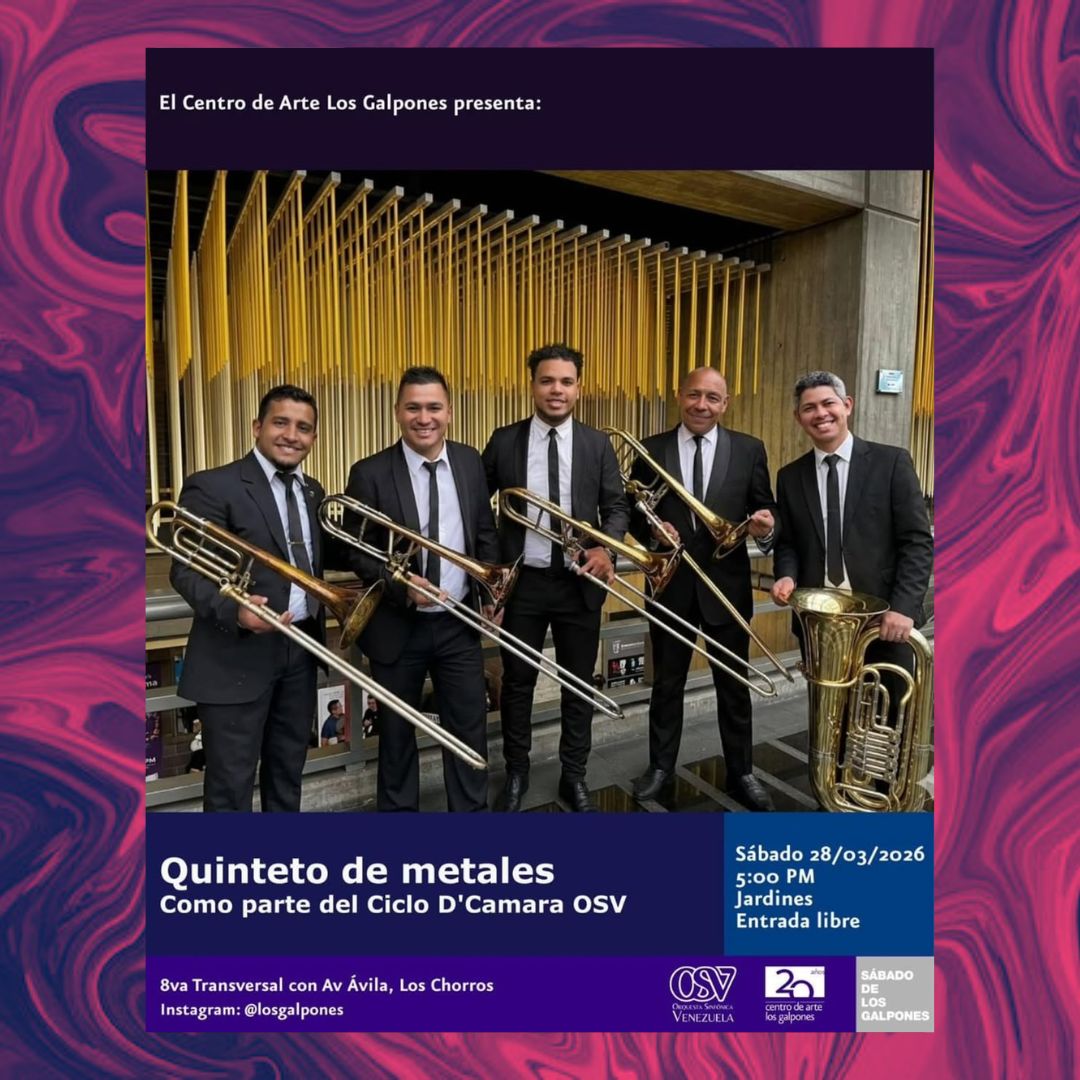 El Quinteto de metales de la Orquesta Sinfónica de Venezuela brindará un concierto, como parte del ciclo D’Camara OSV,  en los espacios abiertos de este recinto cultural donde interpretarán un amplio repertorio musical.