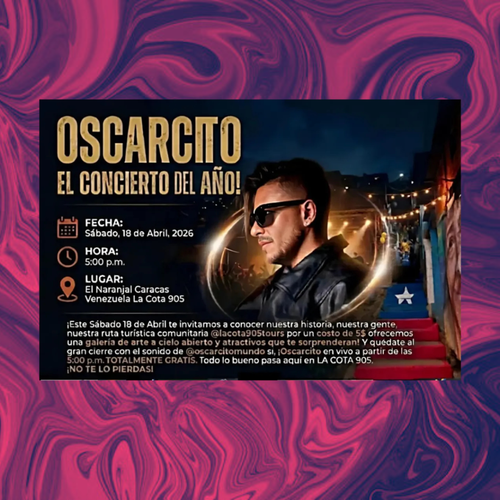 ¡Un encuentro imperdible! Tras meses de coordinación, el intérprete Oscarsito brindará un concierto gratis, en el sector La Cota 905 de Caracas para celebrar el trabajo de autogestión en la zona.