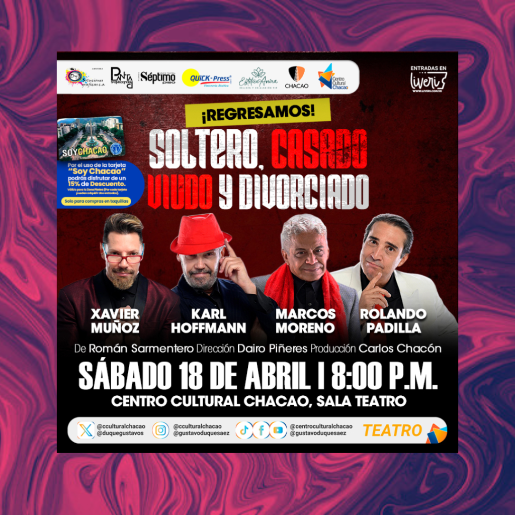 Fechas: Desde el 17 al 25 de Abril Viernes y Sábados 8:00 p.m Domingos 7:00 p.m