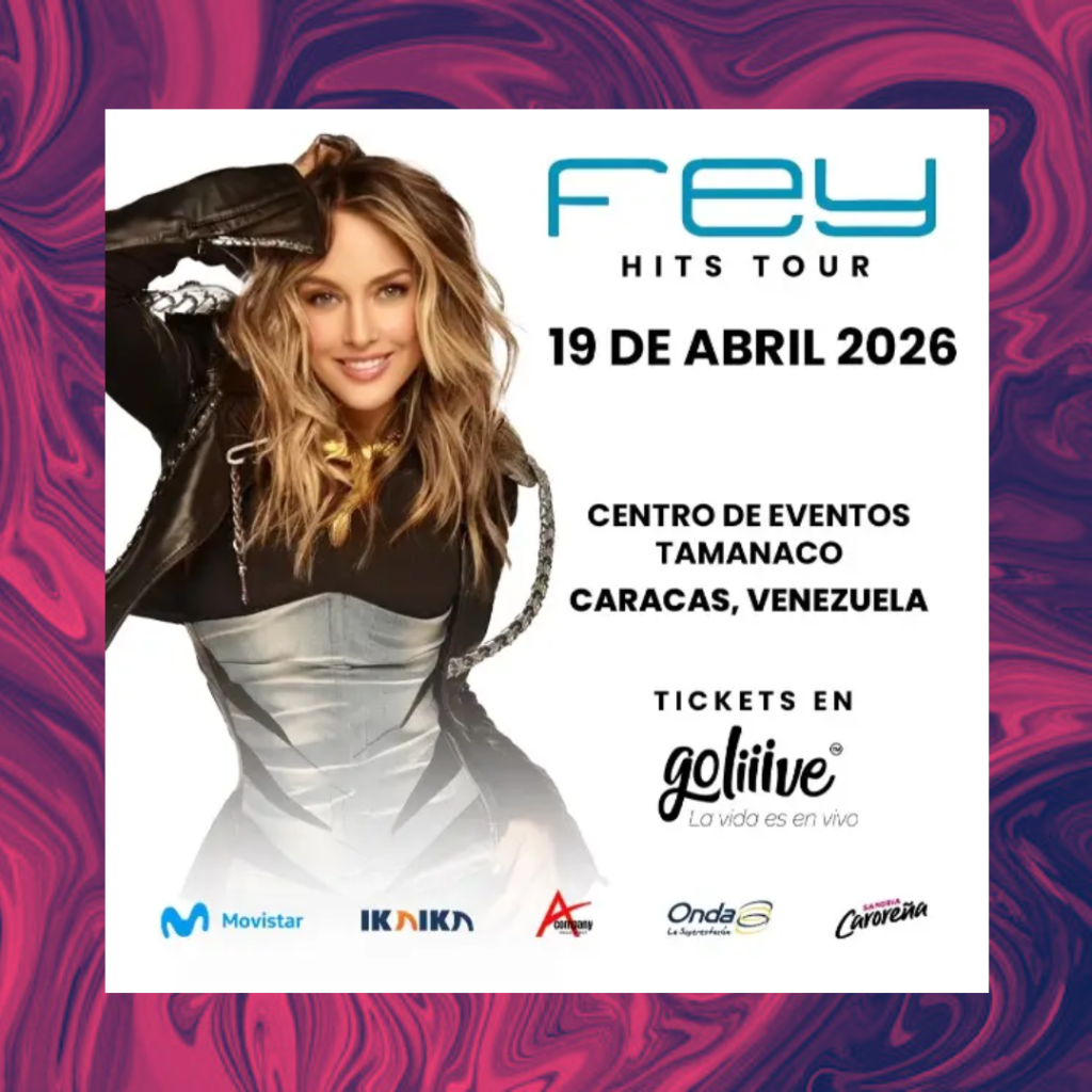 La reina del pop latino vuelve a Caracas para hacernos vibrar con su «Fey Hits Tour». Prepárate para cantar a todo pulmón esos éxitos que marcaron una época en un evento que promete ser histórico.