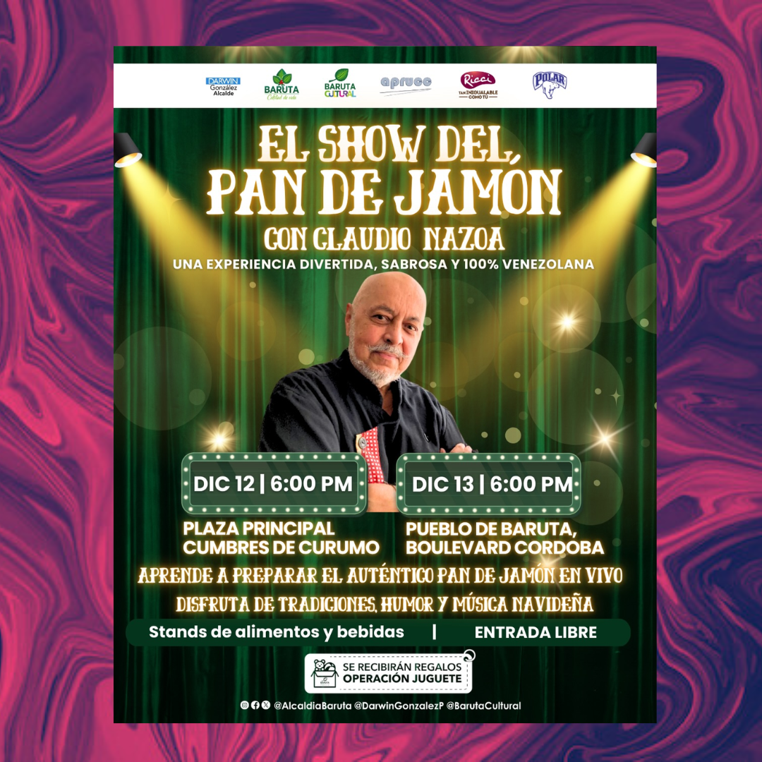 El humorista Claudio Nazoa presentará su stand este fin de semana en dos localidades donde las personas aprenderán a preparar el pan de jamón a través de experiencias sabrosas y 100% venezolanas. Entrada libre y se recibirán juguetes.