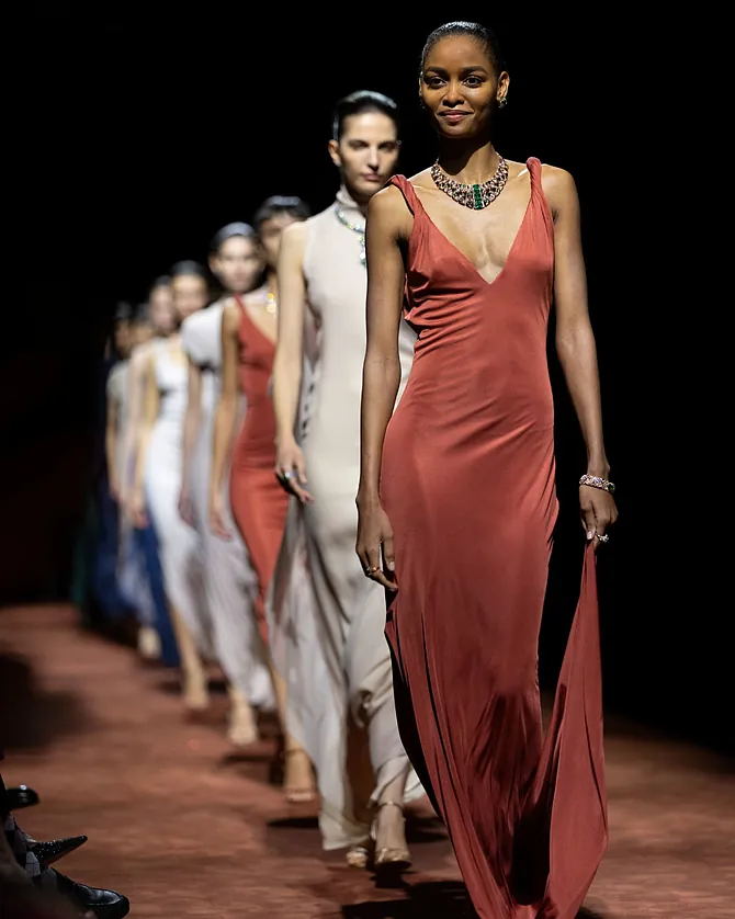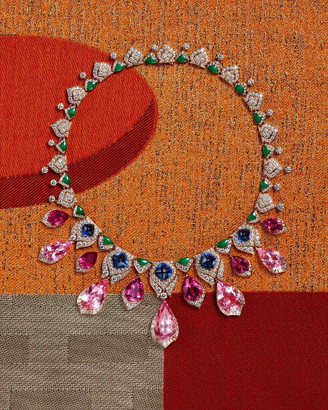 La firma Bulgari presentó en la Villa Arconati -el pequeño Versalles de Milán-, su colección Eclettica, integrada por -más de 160 creaciones-, entre collares, brazaletes, pendientes y anillos con 14 piezas transformables, más de 50 joyas millonarias y nueve extraordinarias obras maestras bajo el nombre Capolavori, que son el corazón de una exposición más amplia de 650 piezas de Alta Joyería, relojes de alta gama, bolsos y fragancias.
