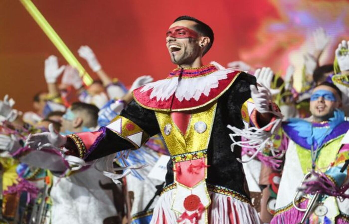 Lugareños deslumbran con trajes monumentales de plumas, lentejuelas y cristales, mientras murgas satíricas cantan coplas picantes acompañadas de timbales, congas y trompetas que contagian fiebre festiva.