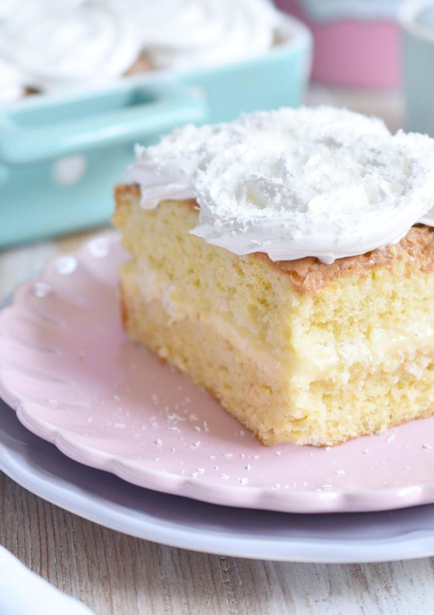 Para montar el postre, cortar el bizcocho por la mitad, rociar con un poco de ron y colocar una generosa capa de crema.