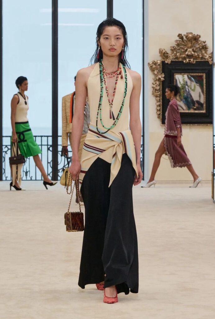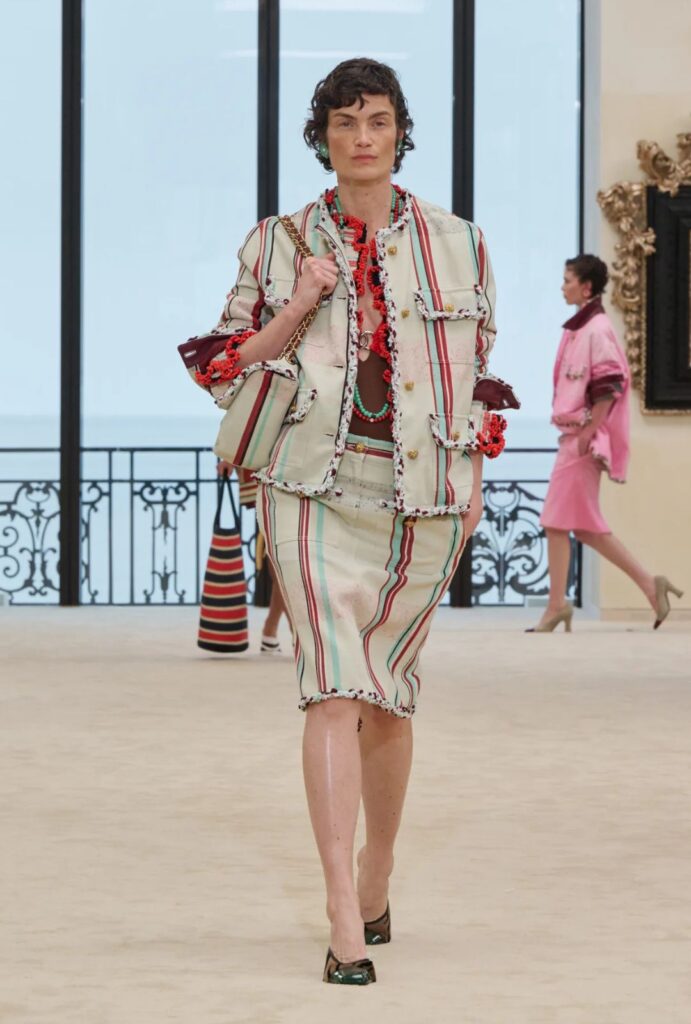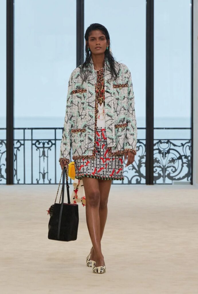 Esta localidad, clave en la historia de la firma, fue la fuente de inspiración para la creación de las prendas con un enfoque relajado, deportivo y con siluetas fluidas, donde se reinterpretan los códigos más reconocibles de Chanel desde una mirada más libre. El tweed se transforma en su versión más ligera y desestructurada que rompe su rigidez clásica.