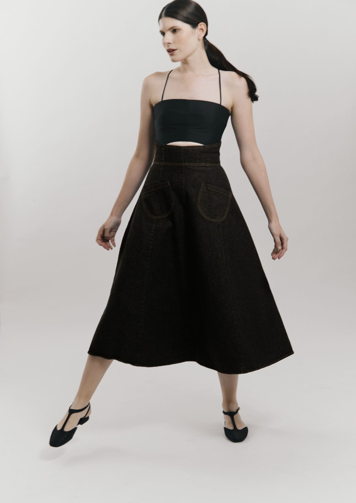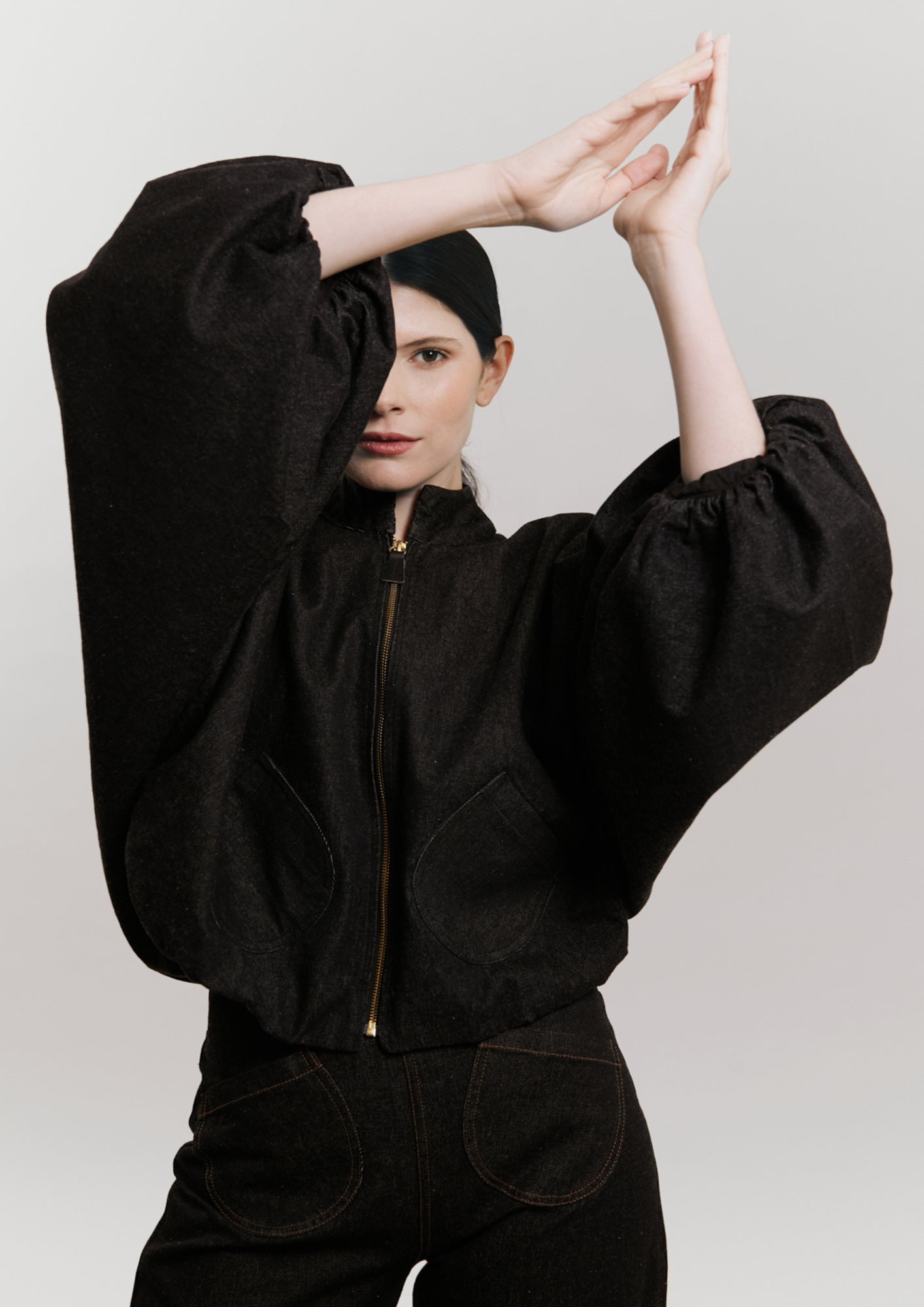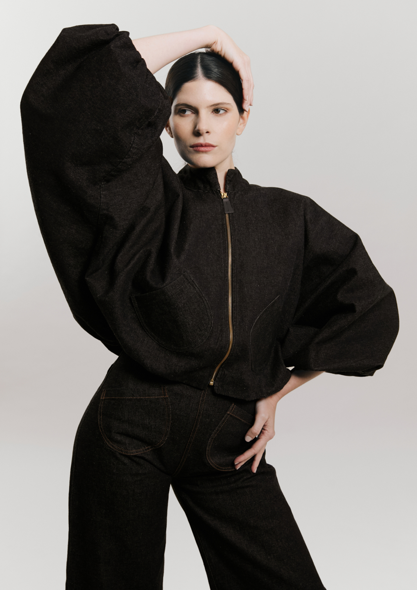 Entendiendo el ritmo de la mujer actual, Robin Morales ha hecho que la versatilidad sea la protagonista. La cápsula gira en torno a piezas de denim negro como su ‘Jean Insignia’ de caída impecable, la muy favorecedora ‘Falda Insignia’ y una chaqueta ‘bomber’ que seguro captará todas las miradas, 3 diseños de tejido vaquero que se entrelazan armoniosamente con texturas 100% algodón en blanco puro y acentos en verde musgo, creando una paleta orgánica y sofisticada.