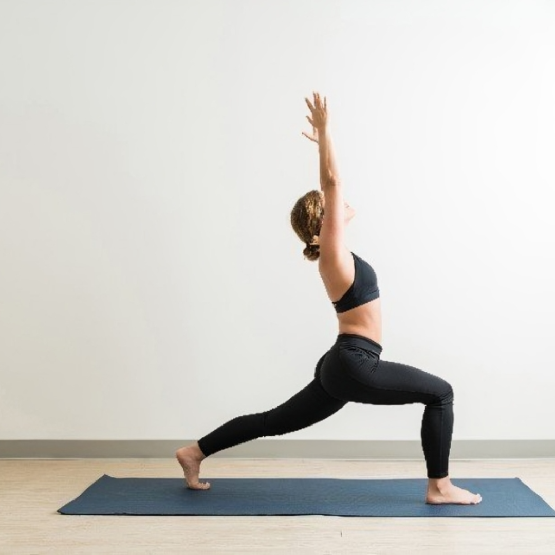 Iniciamos en la postura Tadasana, respirando, llevando la pierna izquierda hacia atrás, manteniendo la cadera en línea, los talones enraizados, la pierna firme sujetando el muslo y la rodilla.