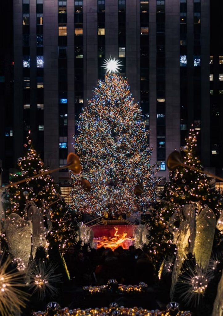 La iluminación del árbol de Rockefeller Center comenzó en 1933 y representa uno de los primeros grandes eventos navideños urbanos con luces que dieron fama mundial a la ciudad durante la temporada de Navidad.