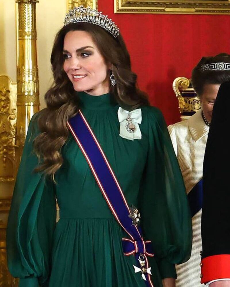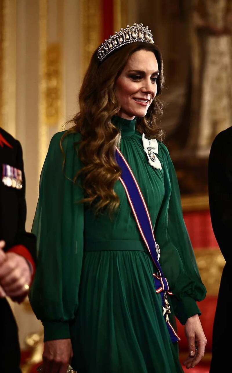 Los reyes Carlos y Camila ofrecieron una cena de Estado para el presidente de Nigeria, Bola Ahmed Tinubu y su esposa Oluremi, de visita en el Reino Unido, en el palacio de Buckingham, donde la princesa de Gales Kate Middleton deslumbró con la emblemática Lover’s Knot Tiara, joya favorita de Lady Diana.