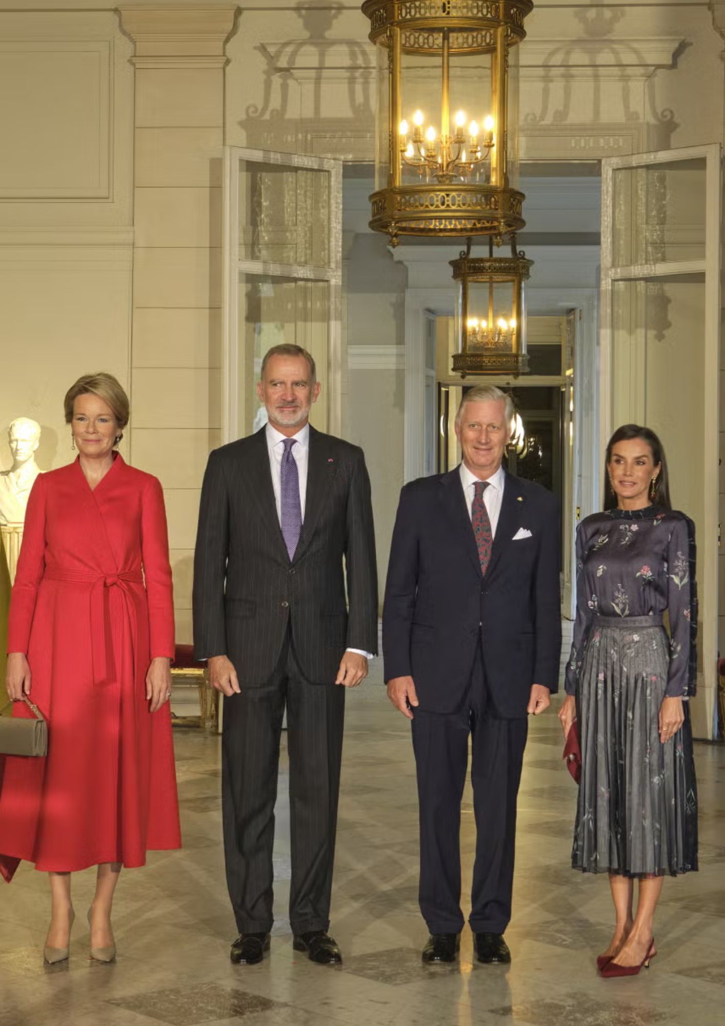 A su llegada, los reyes fueron recibidos por los reyes de los belgas, Felipe y Matilde. Durante su estadía ambos recorrerán la exposición ‘Luz y sombra. Goya y el realismo en España’.