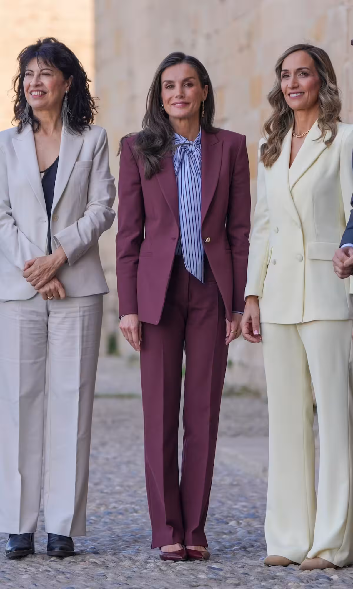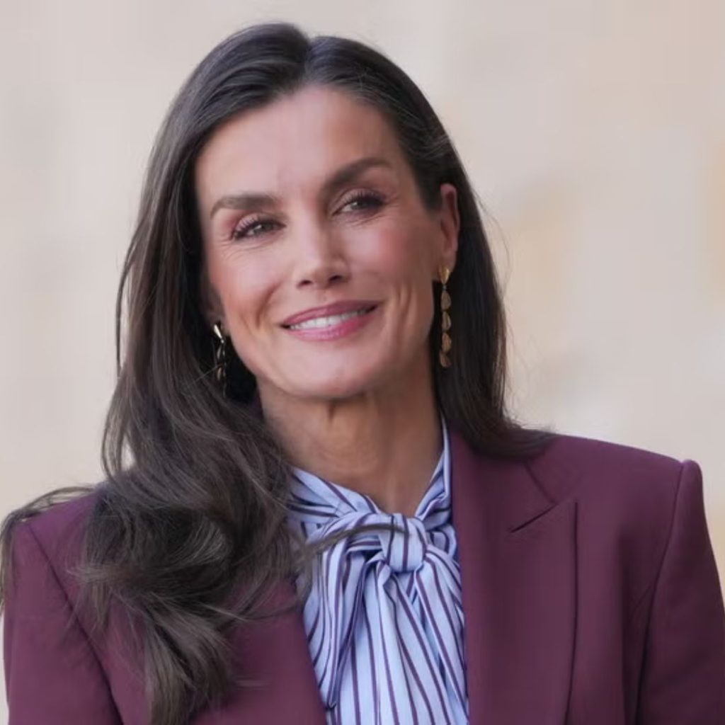 Letizia reafirma su elegancia con una blusa de lazada que marca tendencia