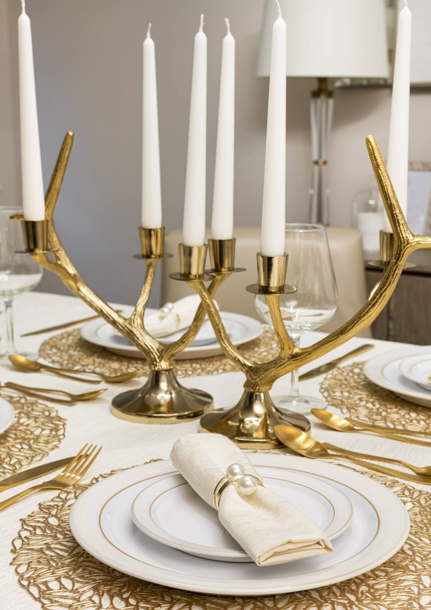Para mantener la magia festiva sin caer en la opulencia, la paleta minimalista utiliza los acentos metálicos de manera medida y refinada. El objetivo es añadir brillo, pero de forma sutil y luminosa.