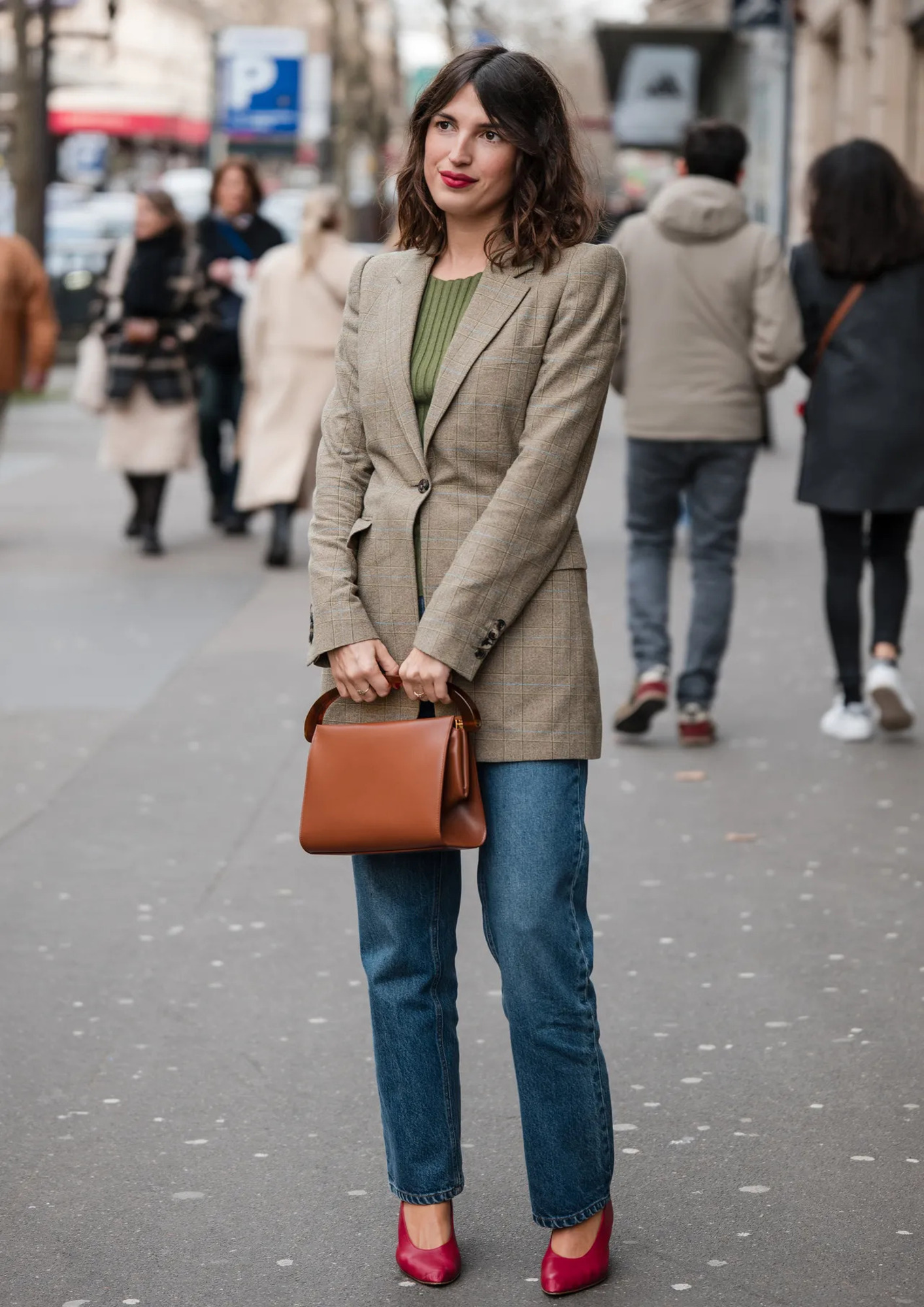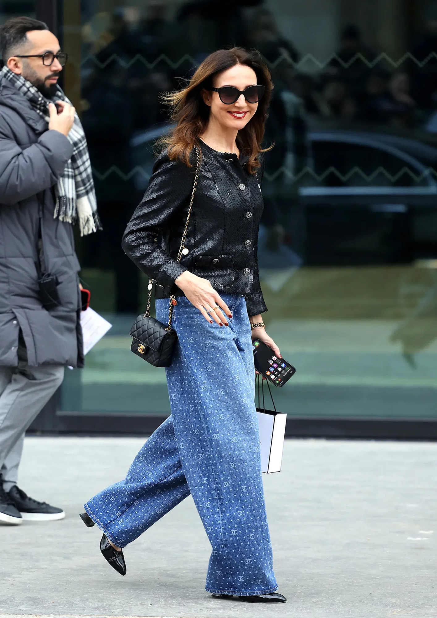 Un look inspirado en Chanel siempre será una opción infalible. Una chaqueta de lana inspirada en Chanel convierte el pantalón jean holgado de casual a refinado en segundos.