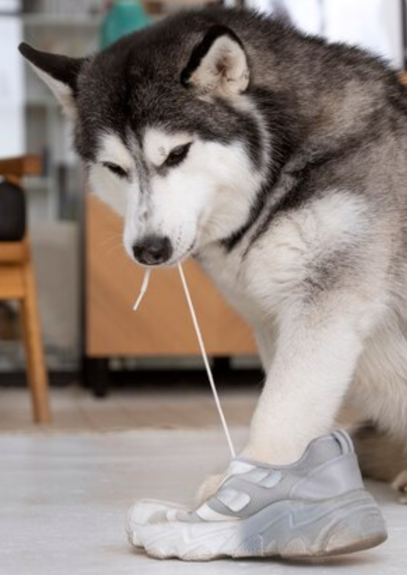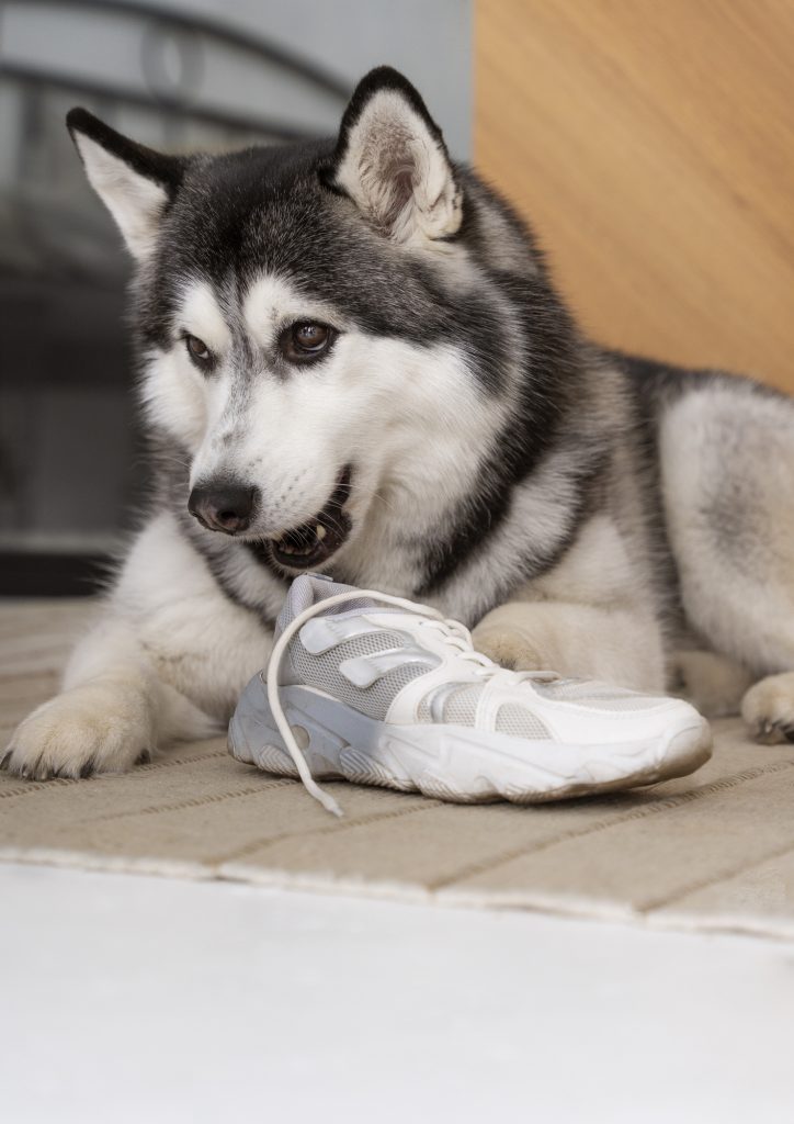 Por otro lado, en perros adultos, la masticación destructiva, especialmente de objetos que poseen un fuerte olor humano (como tus zapatillas recién calzadas), a menudo indica un estado de ansiedad. Esta situación es frecuentemente referida como ansiedad por separación. De hecho, al morder un objeto que tiene un olor fuerte a ti, el perro intenta hallar consuelo y disminuir la tensión que experimenta al quedarse solo.