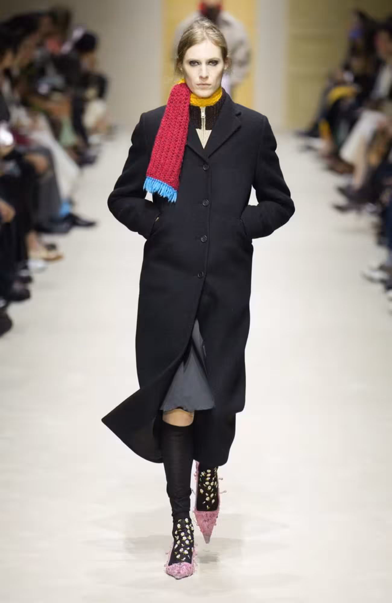 Los creativos apostaron por superposiciones utilitarias —abrigos, bufandas, guantes— que se desprenden mostrando siluetas sensuales marcada por las bermudas y las faldas, los calcetines altos y las botas por debajo de la rodilla, que se llevaron gran parte de la atención.