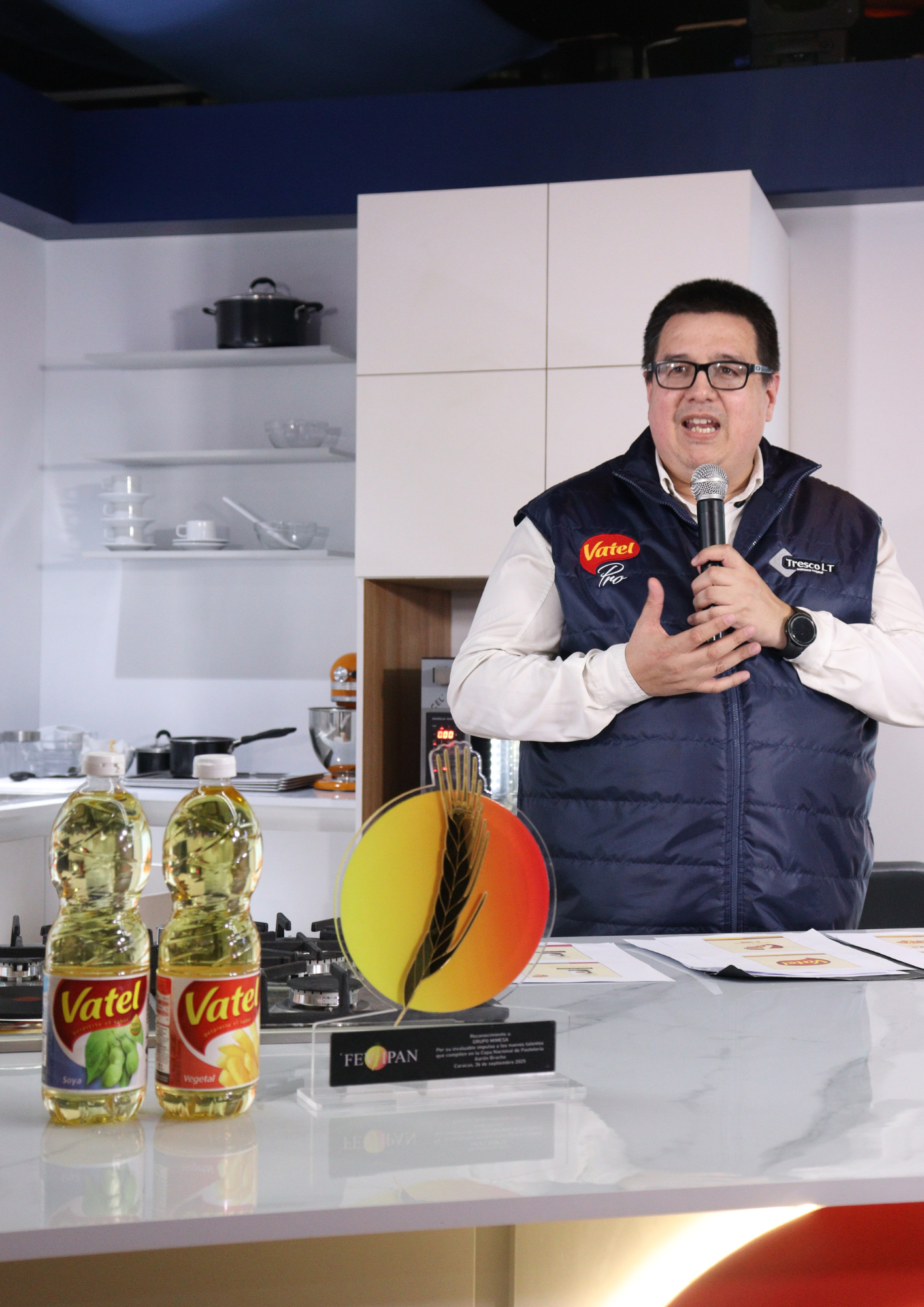 En el marco de la XXVI edición de FEVIPAN (Federación Venezolana de Industriales de la Panificación y Afines), VATEL presentó de manera oficial su línea Vatel Pro, un portafolio especialmente diseñado para atender las necesidades del sector gastronómico, incluyendo alimentos, panaderías, restaurantes, cafés, heladerías y emprendimientos gastronómicos de todos los tamaños. Vatel Pro incluye 7 productos en presentaciones de 18 litros y galón, pensadas especialmente para facilitar el uso en cocinas y negocios profesionales, buscando además ofrecer máximo rendimiento, sabor y eficiencia en diferentes aplicaciones gastronómicas. La oferta se complementa con la marca Tresco, que fortalece su presencia en el mundo panadero con una familia de mantecas vegetales valorada por su versatilidad y rendimiento sin grasas trans.